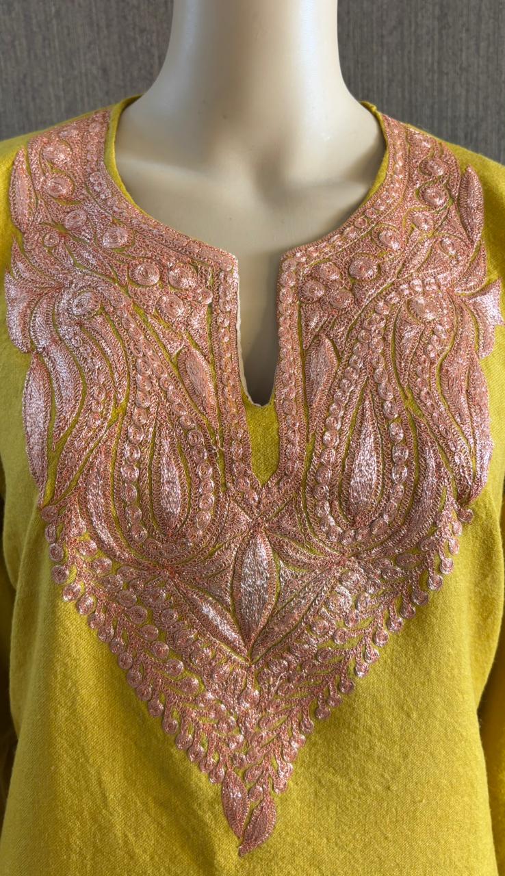 Tilla Work Mustard Woollen Pheran